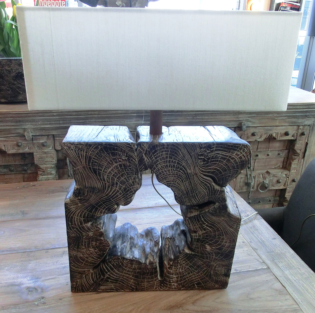 Aus Litschiholz gerfertigter Lampenfuß, massiv. Jeder Fuß ein Unikat! E 27 Fassung Lampenschirm aus Leinen
