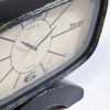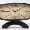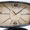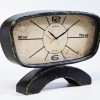 Tischuhr ist auf einem Bogen fixiert, mit raffiniertem Ziffernblatt versehen und aus Eisen, Glas und Papier gefertigt. Uhrwerk wird mit AA 1,5 Batterie betrieben.